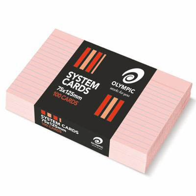 OLYMPIC RULED SYSTEM CARDS 75 X 125MM PINK PACK 100