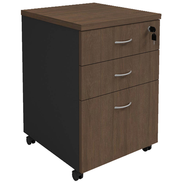 OM PREMIER MOBILE PEDESTAL 3-DRAWER LOCKABLE 468 X 510 X 685MM REGAL WALNUT/CHARCOAL