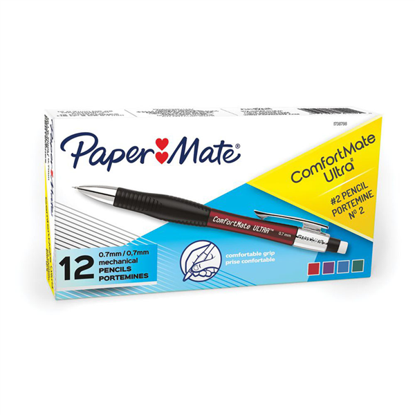 Paper Mate Comfortmate Ultra Mechanical Pencil has a soft rubberized barrel with a unique triangular shape for optimal writing comfort