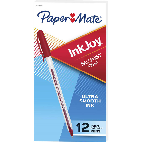 PAPERMATE INKJOY 100ST BALLPOINT PENS MEDIUM RED BOX 12