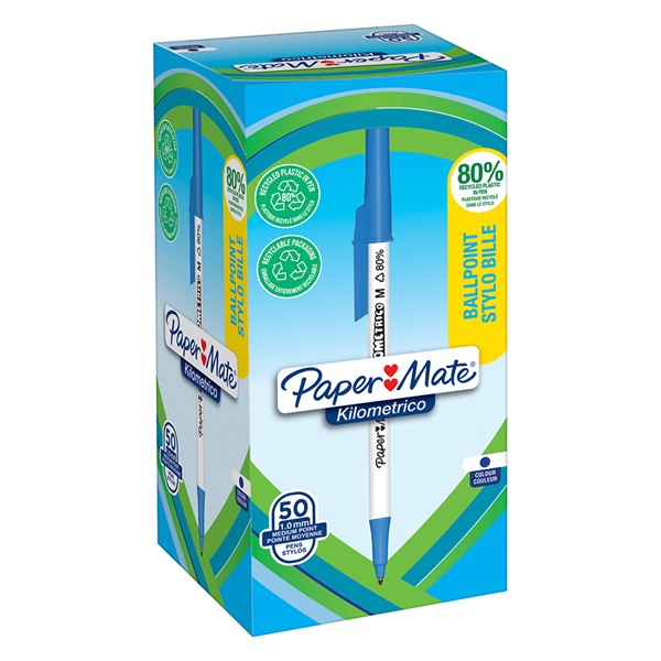 PAPERMATE KILOMETRICO BALLPOINT PENS MEDIUM BLUE BOX 50