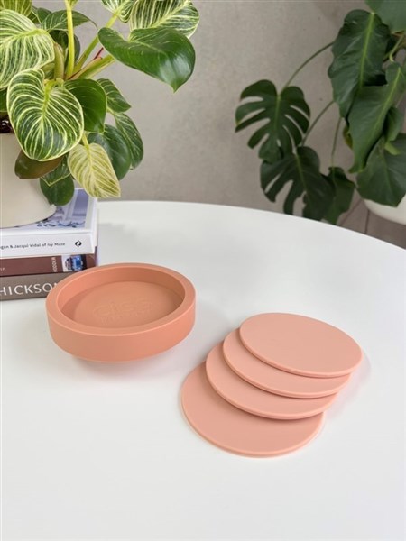 Set of 4 coasters in a holder Unbreakable Dishwasher safe FDA approved food-grade silicone Safe for use from -20 to +110 degrees celsius