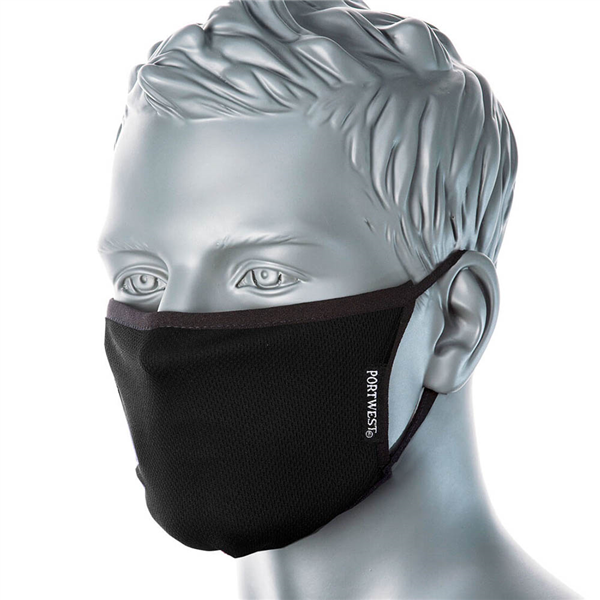 PORTWEST CV33 ANTIMICROBIAL FABRIC FACE MASK 3-PLY BLACK