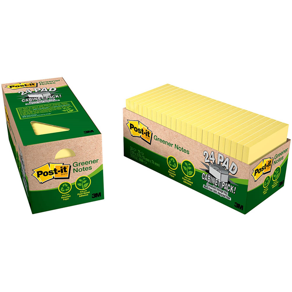 POST-IT 654R-24CP-CY 100% RECYCLED GREENER NOTES 76 X 76MM CANARY YELLOW CABINET PACK 24
