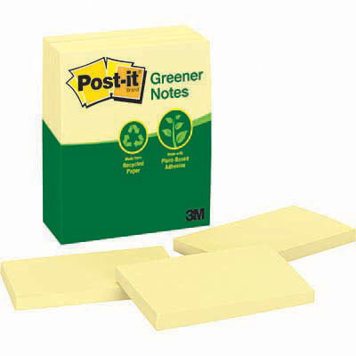 Post-it recycled notes are made from 100% recycled paper and a plant-based adhesive which means no new trees were used. The plant material used to make the adhesive was replenished after harvesting