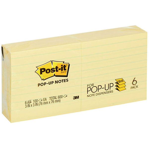 These accordion-style notes pop up one after another from a Post-it Note Dispenser One-handed dispensing with pop-up notes Place on your desk for quick access to notes when taking phone messages or jotting down notes and reminders Perfect size to keep your thoughts in-sync All Post-it notes are recyclable All Post-it notes are SFI chain of custody certified, paper comes from well-managed forests Lined notes keep your thoughts clean and neat