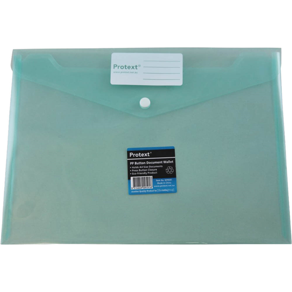 PROTEXT DOCUMENT WALLET WITH BUTTON CLOSURE A4 PP GREEN