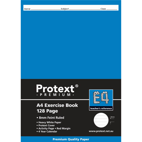 PROTEXT E4 PREMIUM EXERCISE BOOK RULED 8MM 70GSM 128 PAGE A4 ASSORTED