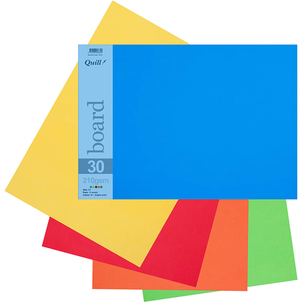 QUILL BOARD 210GSM A3 BRIGHT ASSORTED PACK 15