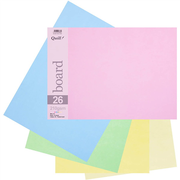 QUILL BOARD 210GSM A3 PASTEL ASSORTED PACK 15