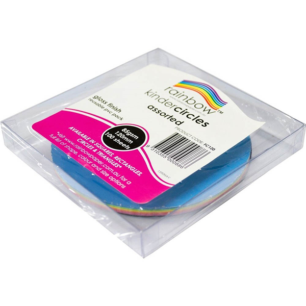 RAINBOW KINDER SHAPES PAPER CIRCLES 85GSM 120MM GLOSSY ASSORTED PACK 100