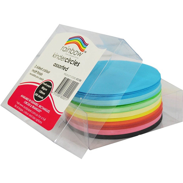 RAINBOW KINDER SHAPES PAPER CIRCLES DOUBLE SIDED 85GSM 120MM MATT ASSORTED PACK 500