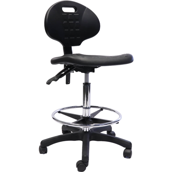 The Rapidline Laboratory drafting chair comes with a moulded polyurethane seat pan and back rest, contoured waterfall seat and infinite tilt lock for complete sitting adjustment