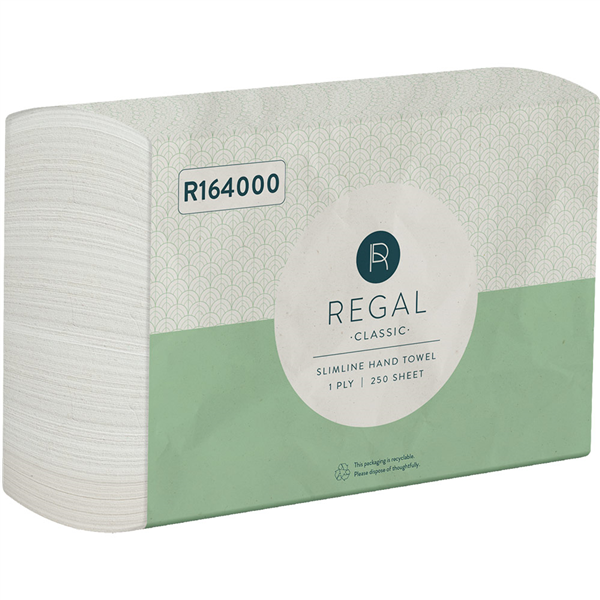 REGAL CLASSIC SLIMLINE INTERLEAVED HAND TOWEL 1-PLY 220 X 225MM 250 SHEET