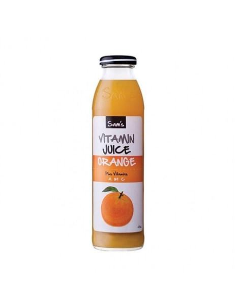 SAMS VITAMIN JUICE ORANGE GLASS BOTTLE 375ML CARTON 12