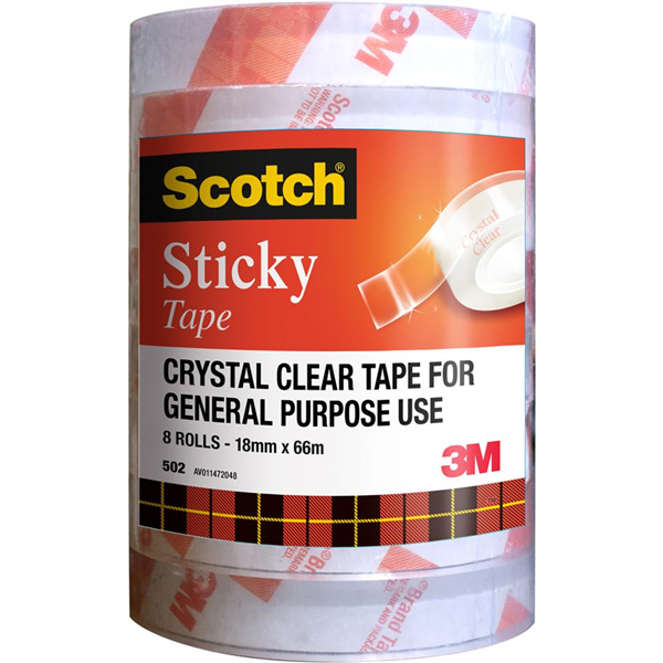 SCOTCH 502 STICKY TAPE 18MM X 66M PACK 8