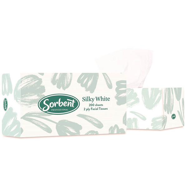 Sorbent Silky White 2-ply facial tissues are super soft to the touch and sensitive for your skin The 200 sheet pack size is suitable for premium, high traffic bathrooms Hypo-allergenic