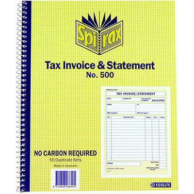 SPIRAX 500 TAX INVOICE AND STATEMENT BOOK QUARTO 250 X 200MM