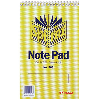 SPIRAX 563 NOTEBOOK REPORTERS SPIRAL BOUND TOP OPEN 100 PAGE 200 X 127MM