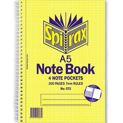 SPIRAX 572 NOTEBOOK 7MM RULED SPIRAL BOUND SIDE OPEN 4 POCKETS 300 PAGE A5