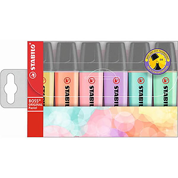 STABILO BOSS HIGHLIGHTER CHISEL PASTEL WALLET 6