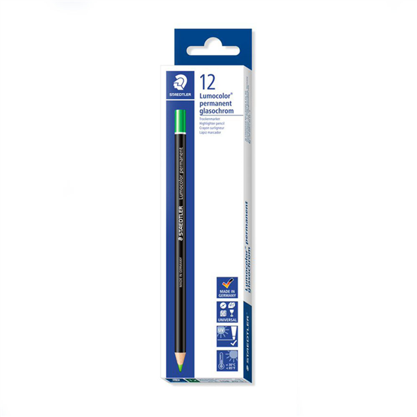 STAEDTLER 108 LUMOCOLOR PERMANENT GLASOCHROM PENCIL GREEN BOX 12