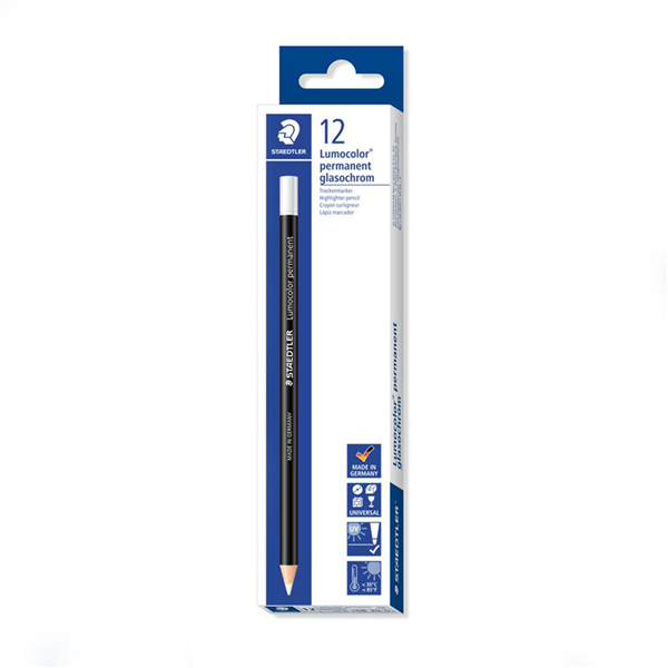 STAEDTLER 108 LUMOCOLOR PERMANENT GLASOCHROM PENCILS WHITE BOX 12