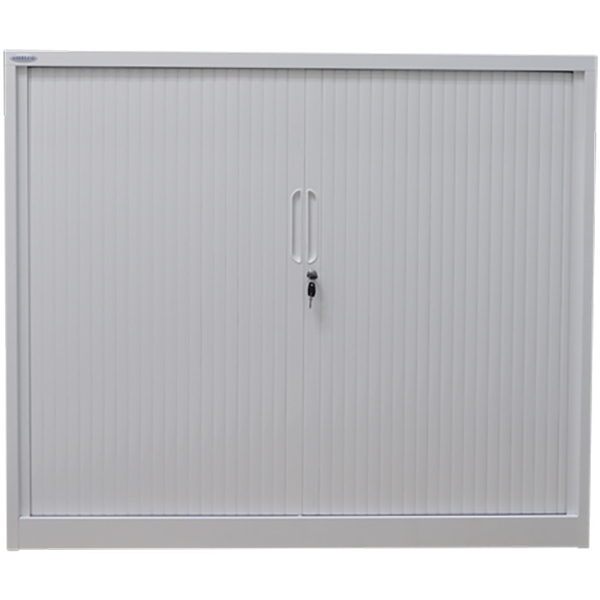 STEELCO TAMBOUR DOOR CABINET 2 SHELVES 1015H X 1200W X 463D MM WHITE SATIN