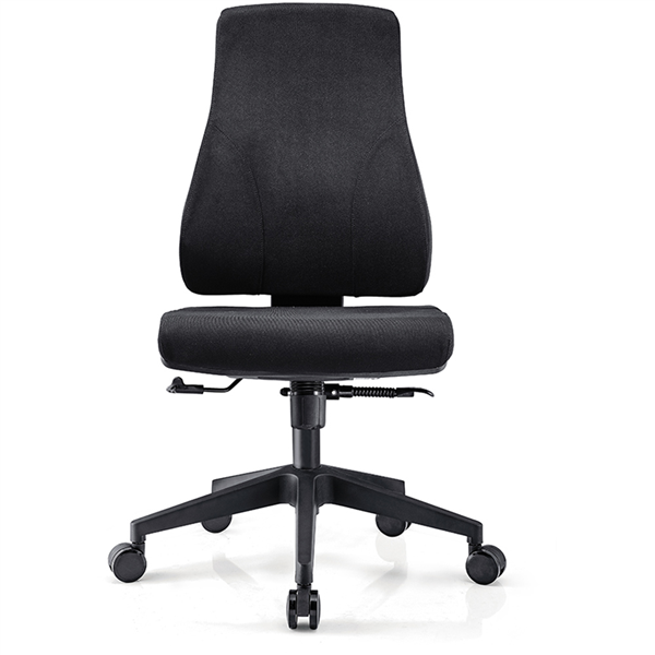 It is equipped with the 'Auto' self-weighted mechanism, which automatically adapts to the user's weight and height, minimizing setup adjustments The synchronized mechanism allows both the backrest and seat to tilt simultaneously, while the lockable feature lets users secure the backrest at various angles An anti-shock function ensures the backrest doesnt tilt abruptly when unlocked The backrest is height-adjustable for optimal comfort, and lumbar support is included for enhanced ergonomics The arm pads are adjustable, allowing users to rotate them inwards or outwards, while the arms themselves are vertically adjustable Soft wheel castors make the chair suitable for both carpeted and hard floors The Madison comes with a black fabric seat and back, while the arms are sold separately