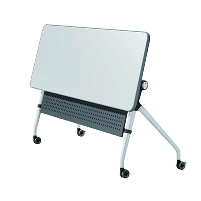 In today's new workspace, furnishings need to be more efficient in using limited space. Syncline makes this happen with ease One action twist handle for easy tilting of the top Hard floor castors, for smooth relocating All four castors lockable Level adjustment feature built into castor, great for those uneven floors Hard wearing shark nose edge Linking mechanism with each 1500 unit Tables simply nest together out of the way when folded Complete with modesty panel Two person size