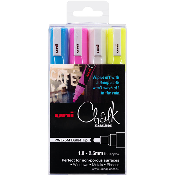 UNI-BALL CHALK MARKER BULLET TIP 2.5MM ASSORTED PACK 4