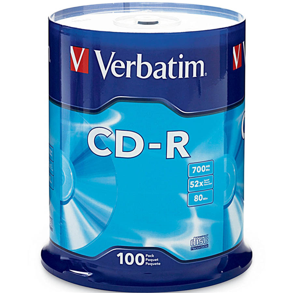 VERBATIM CD-R 700MB 52X SPINDLE SILVER PACK 100