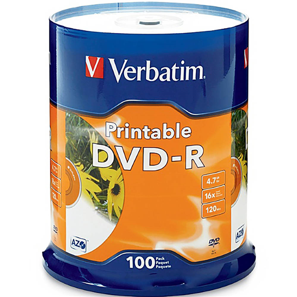 VERBATIM DVD-R 4.7GB 16X PRINTABLE SPINDLE WHITE PACK 100