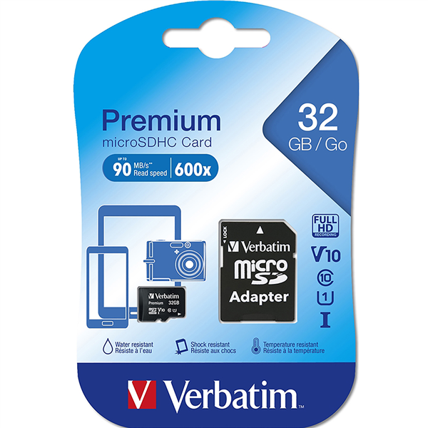 Verbatim Premium microSDHC memory cards are an ideal pairing for smartphones and tablets equipped with a microSD slot
