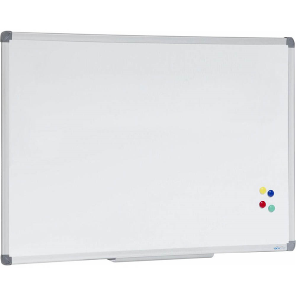 When you write that idea onto a whiteboard.. it becomes visual.. something that you and others can respond to The idea now turns into something solid, something to develop Whiteboards are the business tools that.. turn ideas.. into action Only non toxic, water soluble, environment friendly glues are used And our backing board is environment friendly bioboard.. made from recycled biomass Aluminium frame is recyclable Corners pieces are polypropylene and can be recycled Steel writing sheet is recyclable Even the Bioboard backing board is made from 100% natural fibres Environmental Statement on our whiteboards Magnetic writing surface Stylish rounded corners - no unsightly exposed brackets Wall fittings included Aluminium pen shelf 4 x 20mm colour magnets supplied with every board Great looks.. for any area Unique design with 2 colour caps supplied (blue and grey) Makes your board more individual Wall fixings included Aluminium pen shelf- slide on Whiteboard can be mounted - portrait or landscape Each board is shrink packed for added protection The backing board is made from recycled wood fibres