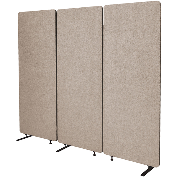28mm acoustic panel designed to reduce office noise levels Simple and quick zip system to join panels together Easily expanded or contracted by zipping additional panels Leg system 1 x flat-t leg and 1 x peg leg - anti trip hazard design Panels can be rotated 270 degrees to fit around corners and office layout Rated to absorb 85% of ambient noise Made from 100% recycled PET eco-friendly materials Fabric 100% Post-Consumer