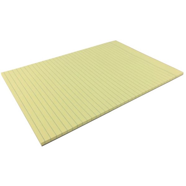 Perfect for everyday use, taking down quick notes and ideas Quality A4 Office pad 50 sheets of 70gsm yellow Bond paper Glued at top so sheets tear away easily Australian Made 8mm ruled paper Crisp blue lines Easy tear off sheets Made from paper sourced from sustainable forests