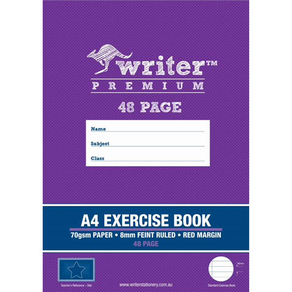 WRITER PREMIUM EXERCISE BOOK FEINT RULED 8MM 70GSM 48 PAGE A4 STAR