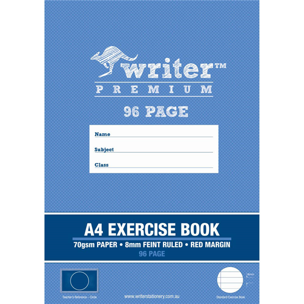 WRITER PREMIUM EXERCISE BOOK FEINT RULED 8MM 70GSM 96 PAGE A4 CIRCLE