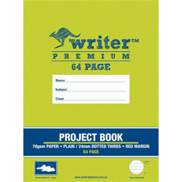 WRITER PREMIUM PROJECT BOOK 24MM PLAIN/DOTTED THIRDS 70GSM 64 PAGE 330 X 240MM CLOUDS