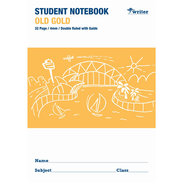 WRITER STUDENT NOTEBOOK 4MM DOUBLE RULED/GUIDE 32 PAGE 250 X 175MM OLD GOLD