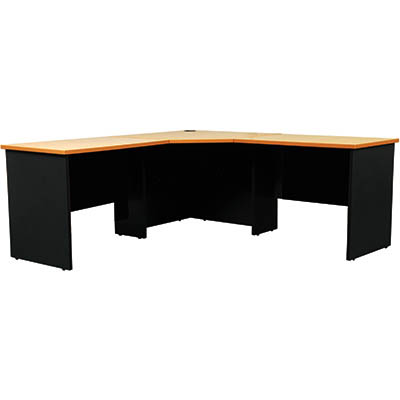 YS DESIGN OXLEY CORNER WORKSTATION COMPLETE 1800 X 1800 X 600 X 730MM BEECH/IRONSTONE