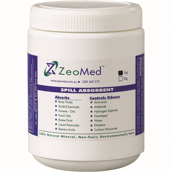 ZeoMed is the ideal solution for locations with spill risks ranging from biohazard and chemical spills to general slip and fall hazards, such as cooking oils or detergents Suitable for laboratories, supermarkets, shopping centres and restaurants Quick acting, natural absorbent of toxic and noxious odours 100% natural mineral and ecologically safe Non-toxic Absorbs excess moisture helping coagulate spills No shelf life - powder does not expire