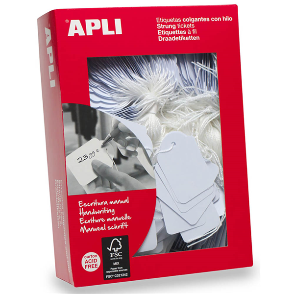 Perfect for adding a personalised touch to your items for pricing and product description Manufactured in 200g cardboard and a 100% polyester string Apli strung ticket is acid free and will retain the colour throughout its life Suitable for pricing and product description Ideal for craft or labelling retail merchandise With punched holes and string for convenient, easy attachment Acid free