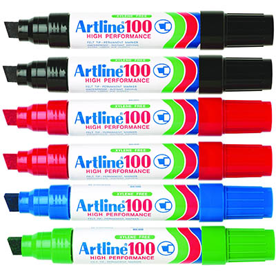 ARTLINE 100 PERMANENT MARKER CHISEL 12MM ASSORTED PACK 6