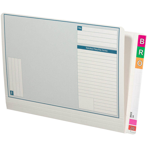 Avery Lateral Notes Files have a note area that allows you or other users to write down detailed and accurate information on each file No more wasting time searching for files! Printed panels on the cover to enable notes and related file information to be noted directly onto the file Manufactured from heavy weight archival board Reinforced side tabs for easy colour code labelling Use with Avery manual colour coding labels or file title labels Alternatively, customise file label with Avery FilePro software and auto filing label