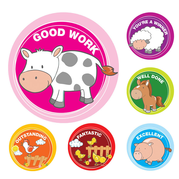 AVERY 69604 MERIT STICKERS FARM ANIMALS PACK 96