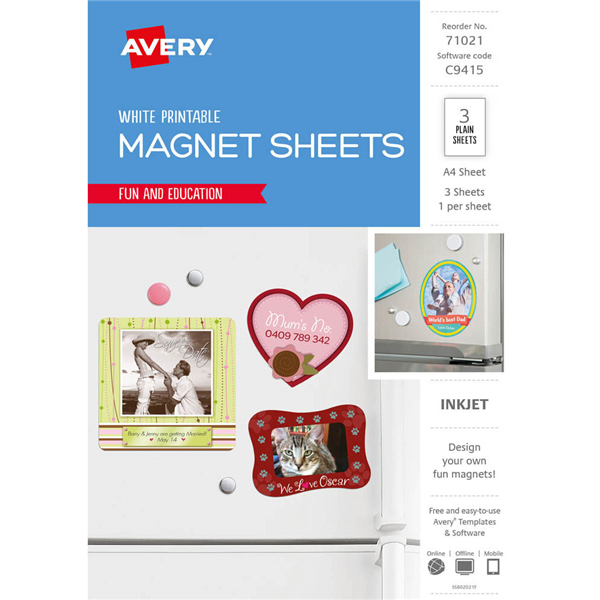 AVERY 71021 C9415 INSPIRED FRIDGE MAGNET A4 PACK 3