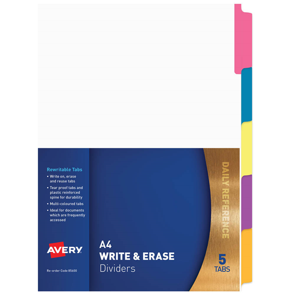 AVERY 85600 DIVIDER MANILLA REUSABLE 5 TAB A4 WHITE