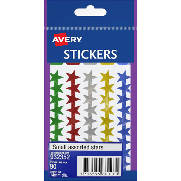 AVERY 932352 MERIT STAR STICKERS 14MM ASSORTED PACK 90